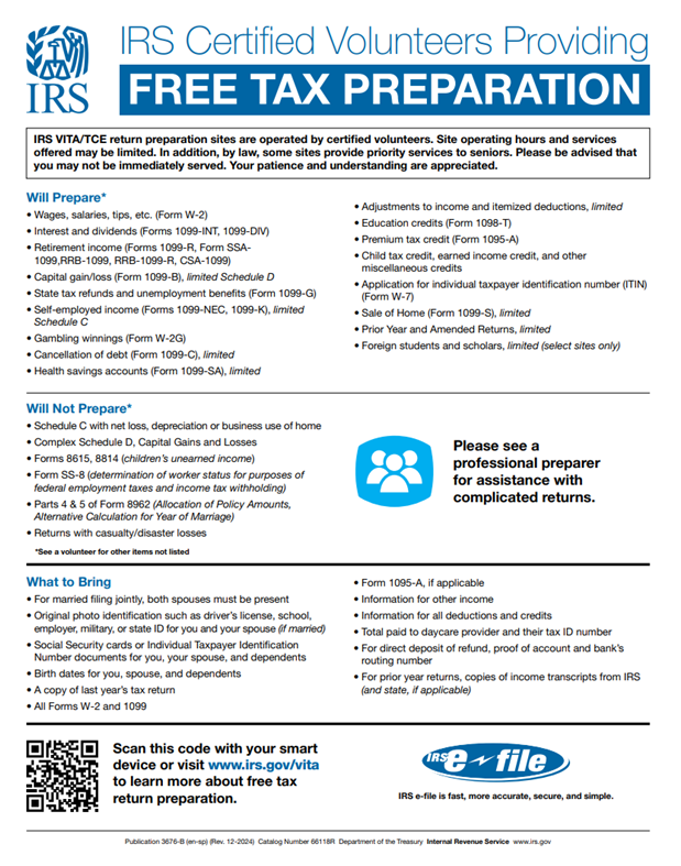 The Kingsport VITA program offers free tax preparation to individuals who need assistance in preparing their own tax returns, including: